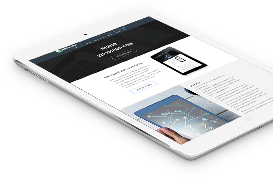 De ZZP Editie van Negeso W/CMSNegeso W/CMS is hét online content management systeem, met de nieuwste features en toch eenvoudig te bedienen. De speciale ZZP Editie is er uitsluitend voor ZZP-ers. Met deze editie maakt Negeso voor u als ZZP-er een kwalitatief hoogwaardige website, met een uniek handgemaakt webdesign, inclusief een domeinnaam, voor zeer scherpe prijs en mét dezelfde Negeso kwaliteit en service! Mobielvriendelijk op tablet en smartphone. U vertelt ons hoe u wilt dat uw website er uit moet zien, en wij ontwerpen en maken uw website precies zoals u hem wilt hebben. Wij bezuinigen nergens op, u krijgt exact dezelfde mogelijkheden, kwaliteit en service die al onze andere klanten genieten. Er zijn geen kunstmatige beperkingen, zo kunt u bijvoorbeeld een onbeperkt aantal pagina's publiceren. Met de vele opties stelt u een complete totaaloplossing samen: e-mail, webpaginateksten schrijven, on-page SEO, off-page SEO, extra taalomgevingen, fotoshoot op locatie, foto's bewerken en plaatsen, Google adresvermelding, logo ontwerpen, visitekaartjes ontwerpen en drukken op papier of metaal, webformulier maken, nieuwsmodule inclusief Facebook en Twitter connector, sticky kaartje op uw homepage, uw Facebook profiel pagina in uw huisstijl opmaken en uw Twitter profiel pagina in uw huisstijl opmaken. |